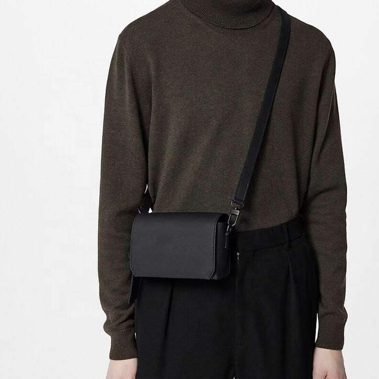 Custom Logo Fashion Men's Shoulder Bags Square Small Wallet Messenger Bag PU Leather Crossbody Business Mobile Phone Bags