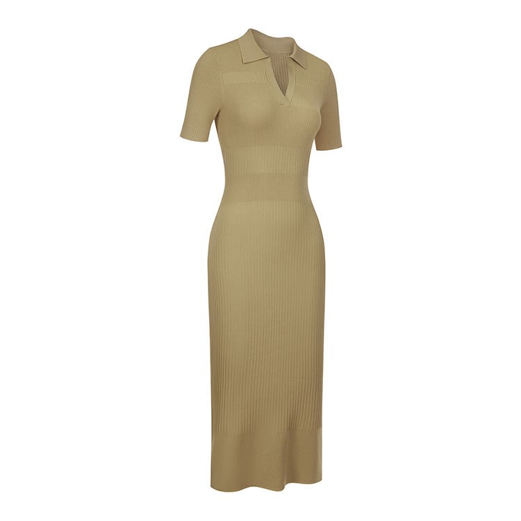 Knitwear manufacturers custom summer v neck rib elegant casual women's clothing plus size dresses sweater knit women's dresses