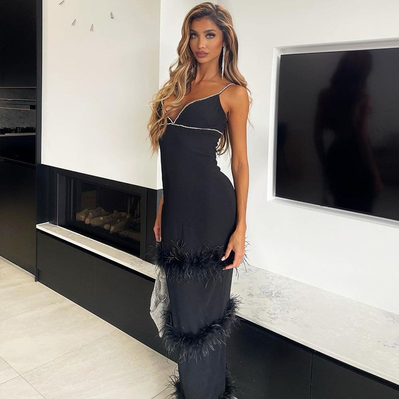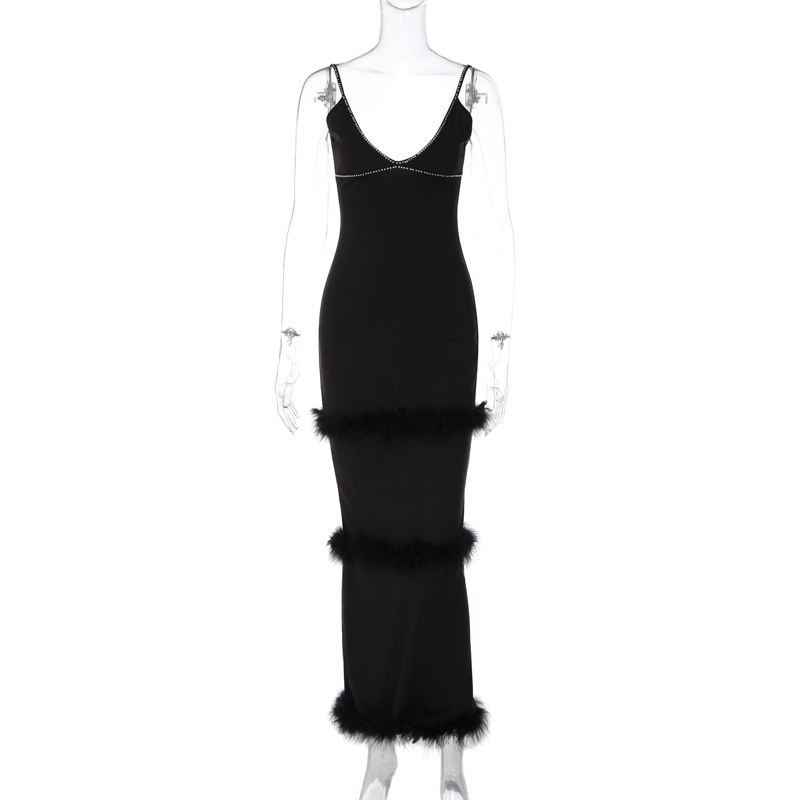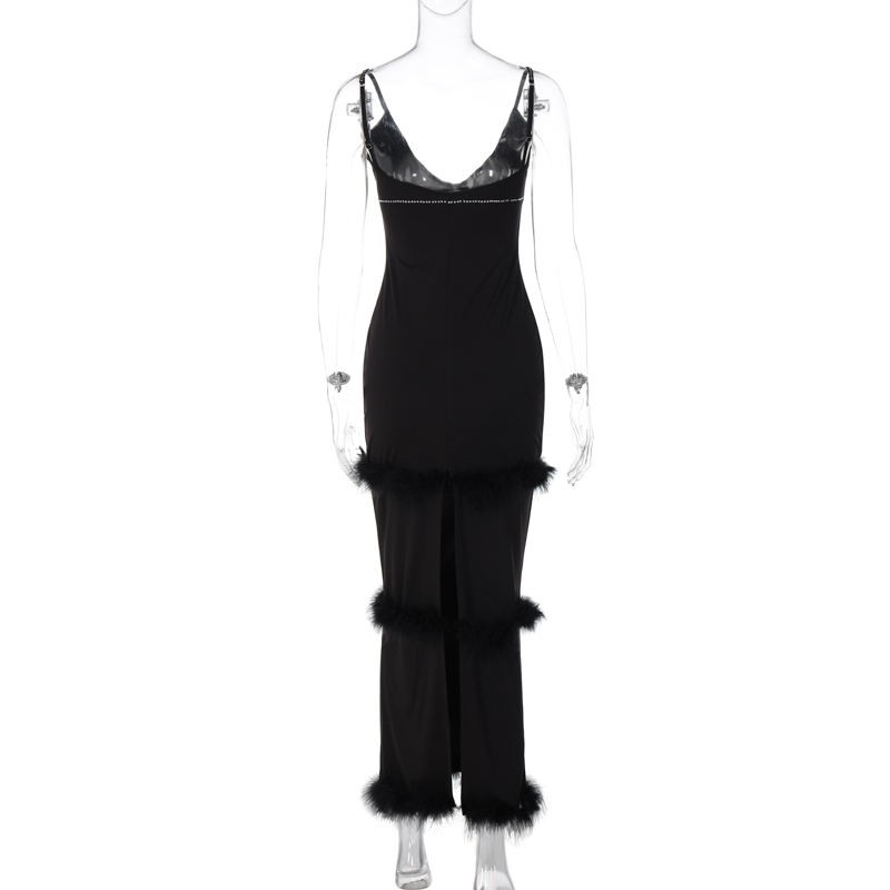 Lygens 12978 Deep V Feather Diamond Rhinestone Slit Women'S Dresses Elegant Party Club Fashion Plus Size For Women'S Clothing