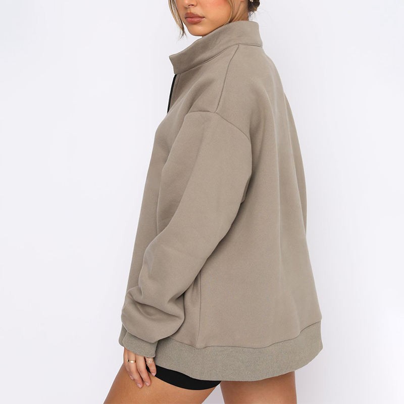 y21k casual 1/4 quarter zipper long sleeve sweatshirt loose fit pullover top collar drop shoulder plus size women's clothing
